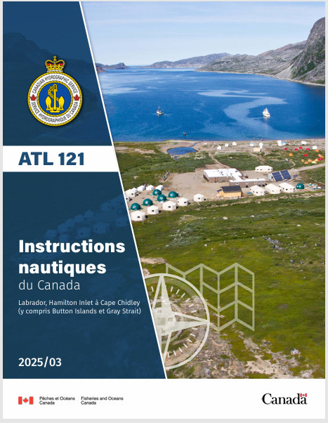 Canadian Sailing Direction – ATL 121 (1st Edition) covers Labrador from Hamilton Inlet to Cape Chidley, including Button Islands and Gray Strait. Canadian Sailing Directions expand charted details and provide important information of interest to navigation which may not necessarily be found on charts or in other marine publications